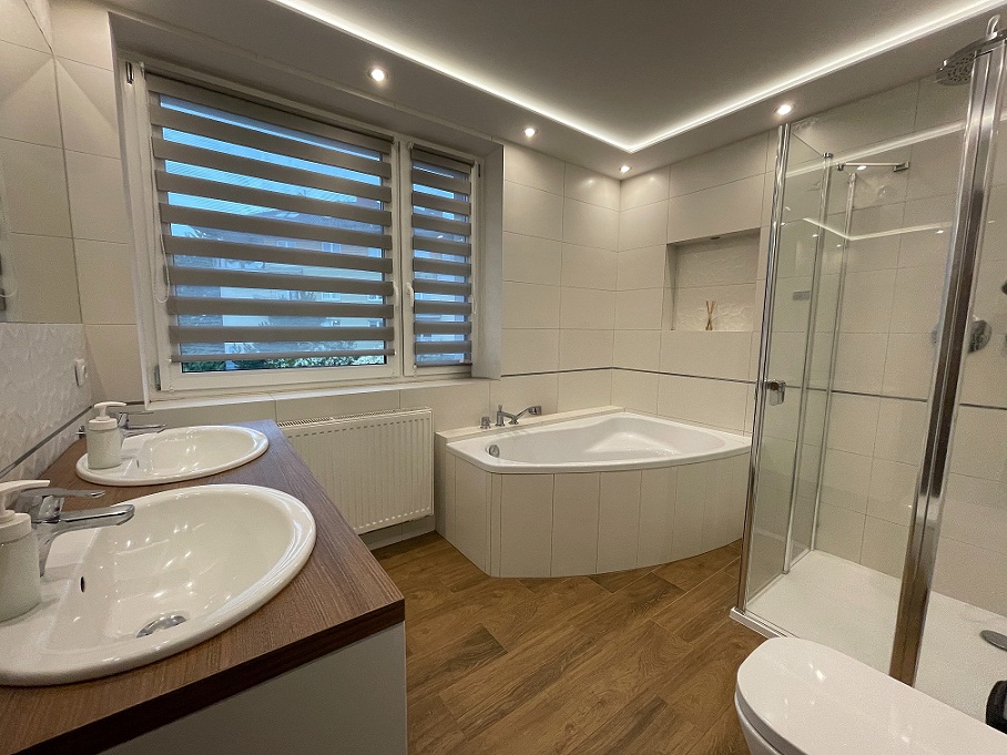 -Dom po remoncie, zyskał nowa elewację, no okna, nowe łazienki, podłogi itp.
