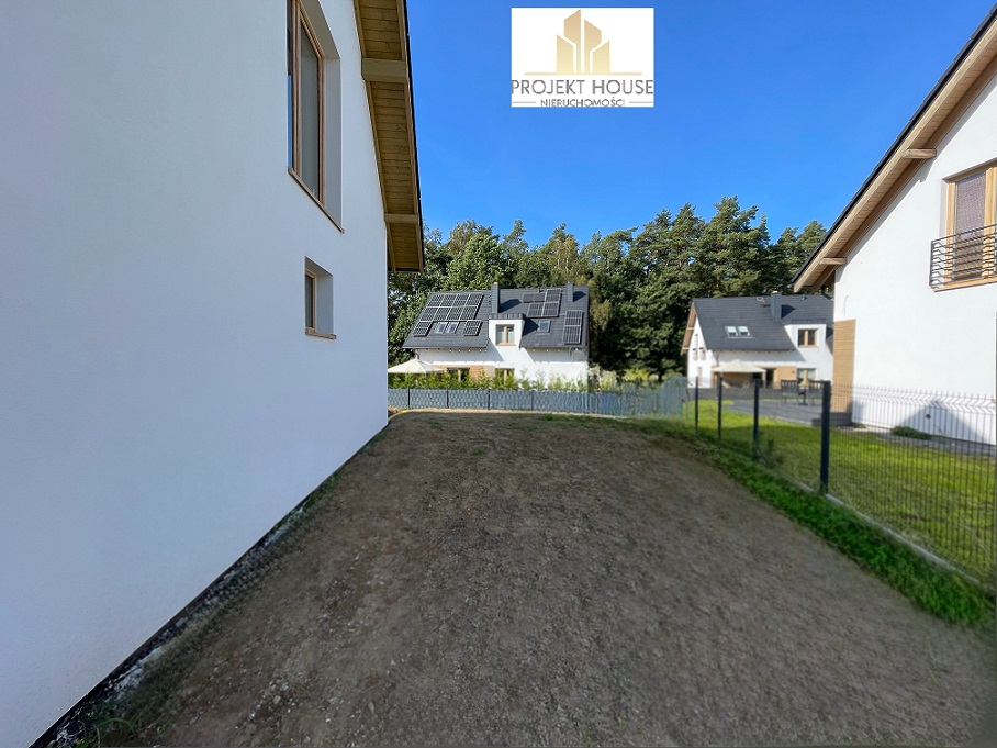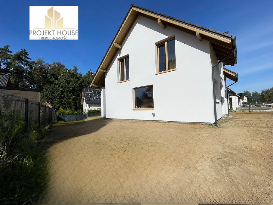 Budynek w standardzie deweloperskim: ściany zewnętrzne gazobeton, ocieplone styropianem grafitowy 15cm , ściany wewnętrzne tynkowane, dach kryty dachówką betonową w kolorze grafit, w całym domu rozprowadzone ogrzewanie podłogowe, z możliwością indywidualnego sterowania w każdym pokoju (po zakupie i zainstalowaniu odpowiednich sterowników), kocioł  dwufunkcyjny gazowy. Rozprowadzona została instalacja alarmowa pod czujki w środku oraz kamery na zewnątrz budynku. Wejście do budynku, podjazd oraz taras wyłożony kostką brukową. Okna trzyszybowe ( w salonie przesuwne). Szambo 10 m3 (kanalizacja miejska planowana w 2026 roku)