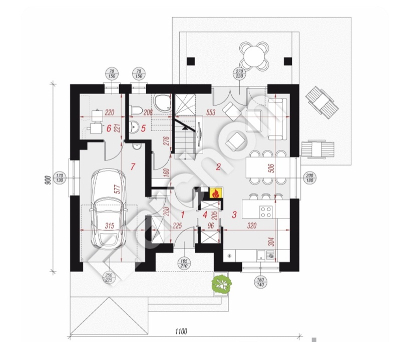 - PARTER to wygodna przestrzeń dzienna, na którą składa się salon 28 m2, kuchnia 9,54 m2, spiżarką 1,85 m2, łazienka 4,35 m2,wiatrołap 5,64 m2, garaż 17,64 m2, kotłownia z pralnią 4,69 m2.